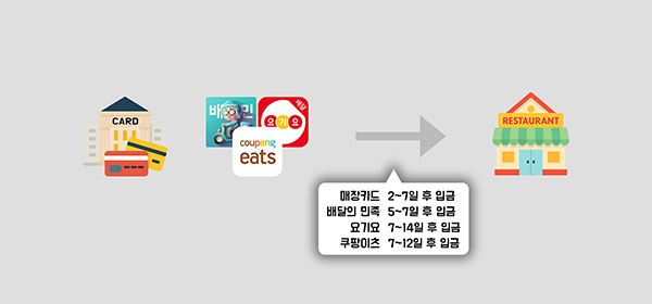 배달 플렛폼 (배달의 민족, 요기요, 쿠팡이츠), 매장 카드 매출까지 익일 전액 입금